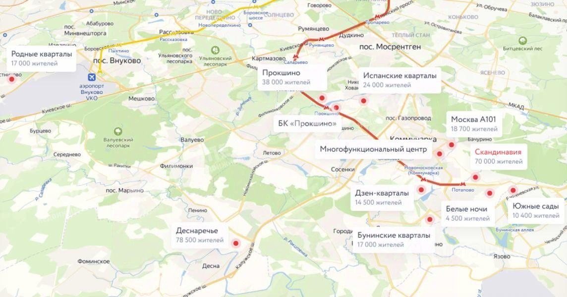 Жилой район "Скандинавия" расположен в Новой Москве. Станция метро "Потапово" находится всего в 2 минутах езды. Удобный выезд на Калужское шоссе и трассу Солнцево-Бутово-Варшавское шоссе. Прогнозируемая численность населения района — 70 000 человек, что обеспечивает высокий покупательский трафик и стабильный спрос на товары и услуги.