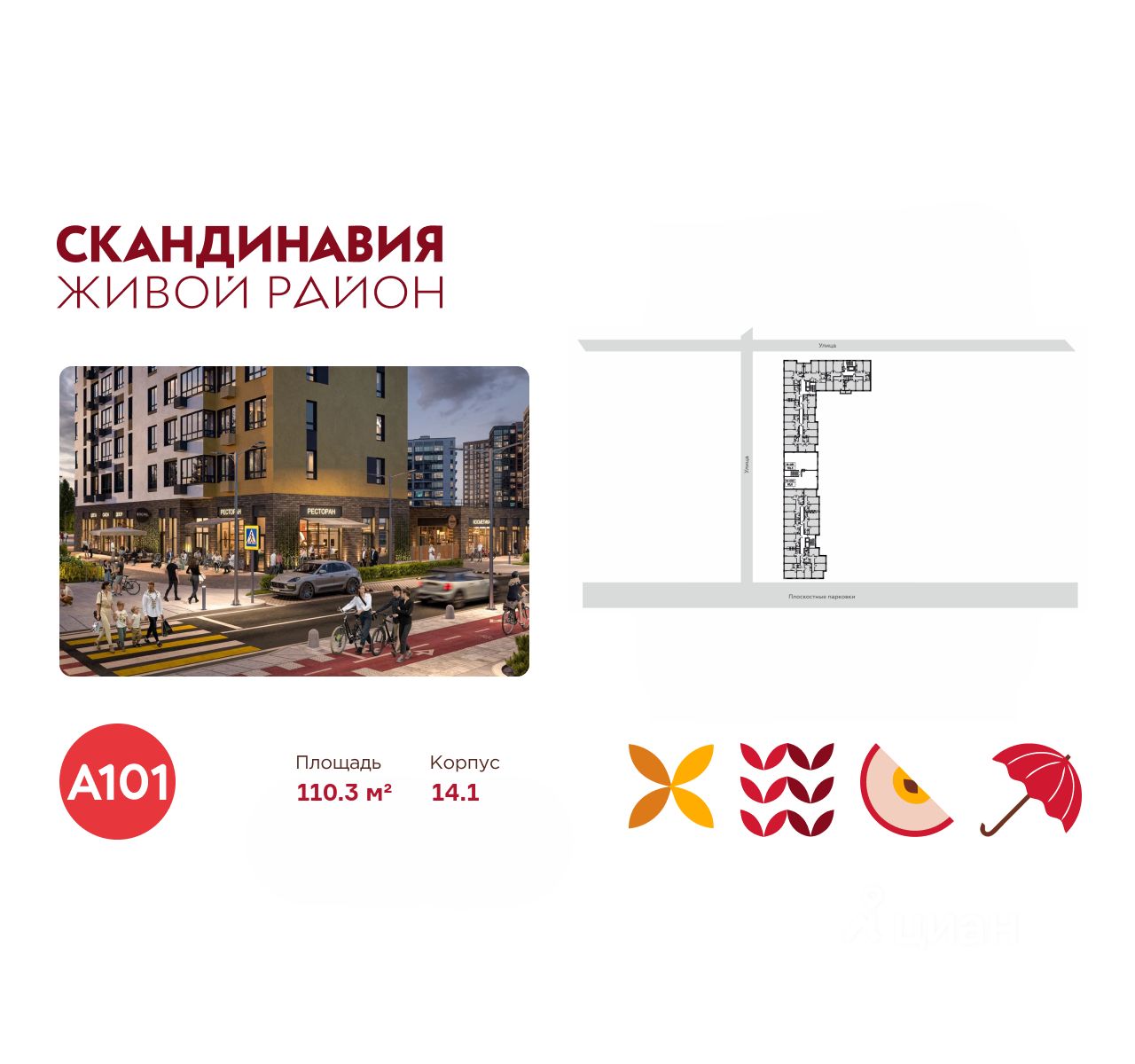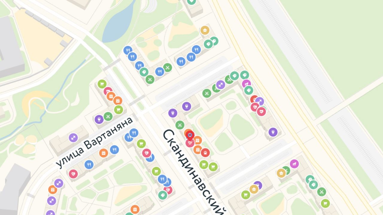 Всё это обеспечивает высокий пешеходный трафик и востребованность коммерческих объектов. Любой объект инфраструктуры "Скандинавии" находится в шаговой доступности. Многие жители не покидают локацию в течение дня, пользуясь услугами и делая покупки.