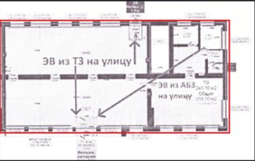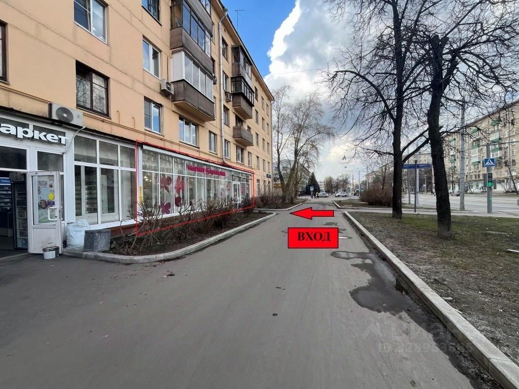 1-й этаж жилого дома, 3 входа, первый центральный вход, два других под разгрузку/погрузку.