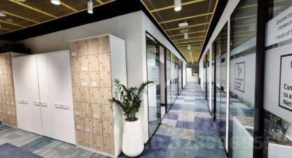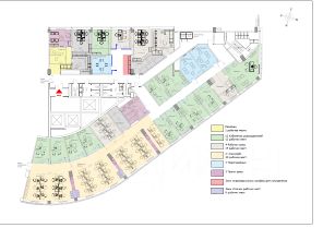 Смешанная планировка. Свыше 70 рабочих мест в опенспейсе и кабинетах (более 10) . Функциональная оборудованная кухня, комната отдыха. Служебные помещения - гардероб, архив, мейл рум, серверная.