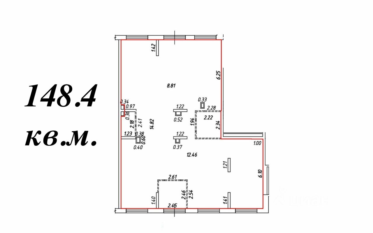 Прекрасная планировка позволит вам организовать как единое пространство для бизнеса, так и разделить на 2 отдельных помещения для разных видов деятельности.