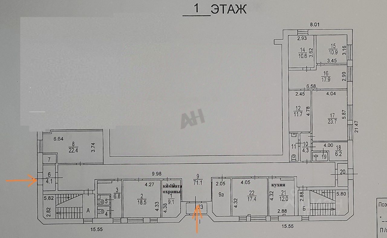 Лот 1078370 Предложение от Собственника! Сдается особняк площадью 1252 кв.м. со своей территорией в долгосрочной аренде на 8-10 машин вкл.в стоимость, 2 отдельных входа в здание, идеально под офис, медцентр или образовательное учреждение, не подходит под гостиницу/хостел, выделенная мощность 90 кВт (возможно увеличение до 200 кВт), поделен на 33 кабинета, кухню и с.у., выполнен евроремонт, несколько кабинетов с высотой потолков около 5 м, установлены кондиционеры, прямая аренда, долгосрочный договор, предоставляются арендные каникулы, большая свободная бесплатная парковка рядом.