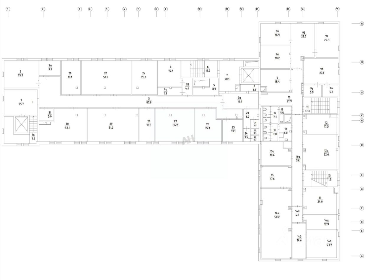 Помещение полностью оборудовано центральной системой приточно-вытяжной вентиляции и кондиционирования, а также системой автоматического спринклерного пожаротушения. Локальная сеть разведена по всем помещениям, санузлы расположены в общей зоне на этаже.