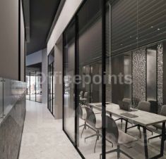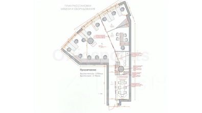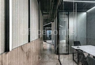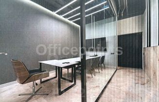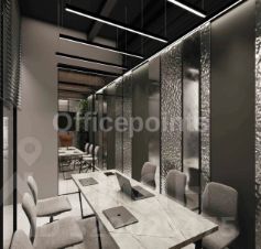 В помещении выполнена офисная отделка, смешанная планировка (open-space на 10 р.м., кабинет руководителя с брифинг-столом для 4-5 посетителей, переговорная на 8 человек, гардероб, система хранения для хозяйственных нужд и офисных расходных материалов, кухня).