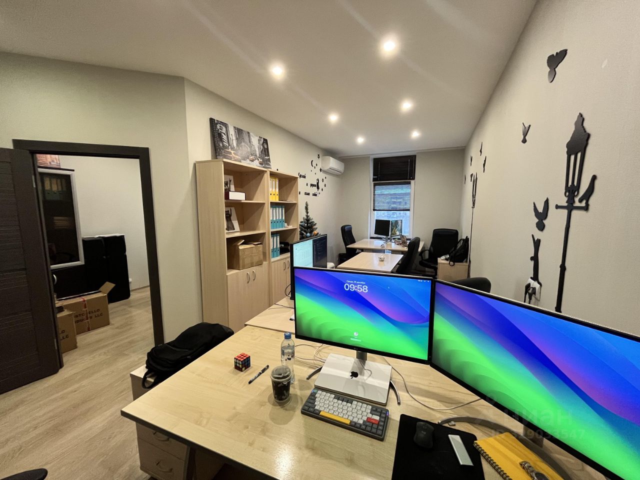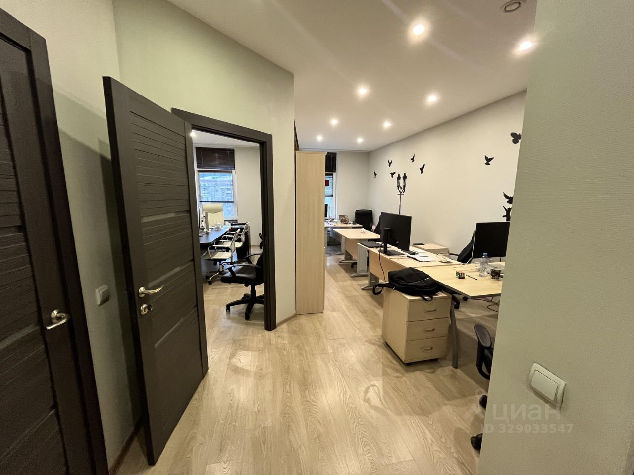 Хорошая офисная отделка. Мебель, перепланировки и прочее - обсуждается. На фото пример расстановки. Кондиционирование в каждом помещении. Круглосуточная охрана и эксплуатация.