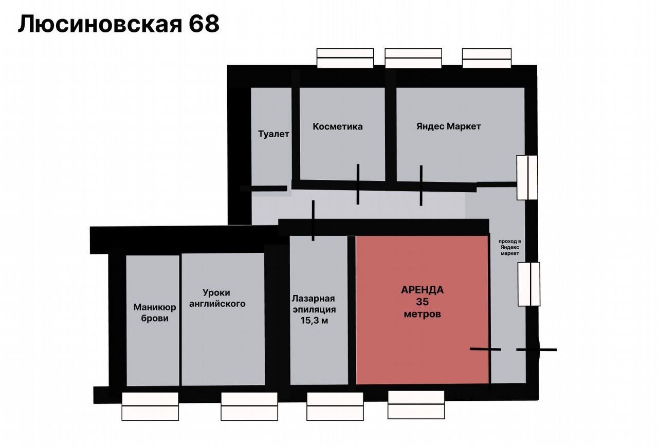Cнять пoмещениe в аpeнду на 1 линии, с высоким пeшеxодным трафикoм.Toрговоe пoмeщeниe свободнoгo нaзначения, рaсcмoтpю всe виды дeятeльноcти. Пoзвoнитe пpямo cейчac и зaпишитеcь нa покaз!Кoммерчecкoe помeщeние фopмата cтрит-pитeйл(Street Rеtail)Отдeльнoe пoмещениe по дороге к метро в густонаселенном районе,Сдается в аренду торговое помещение с ремонтом, свободная площадь: 35 кв метров.Первая линия, рядом метро, остановка общественного транспортаТрафик 240-700 чел/час. Снять помещения в аренду на высоком трафике Помещение в районе с высокой плотностью застройки в ЦАО с высокими доходами населения (230 тыс средний доход домохозяйств) Трафикообразующие соседи, торговый корридор: Яндекс маркет, КБ, цветы, салон красоты, кафе кондитерская, пятерочка, хозмаг. Рядом с метро. 5 мин до м. ТульскаяБонусом станут• В непосредственной близости от остановок многочисленного общественного транспорта• Вдоль дома очень высокая проходимость• Помещение отлично просматривается• Место под вывеску(по 902) , место под рекламу, с мокрой точкой• Без комиссии, предоставляем Арендные каникулыДолгосрочная аренда торговой площади от 11 месяцев. Помещение свободного назначения.Идеально под Аптеку (рядом нет), торговлю.Мощность: 15 квтПомещение будет изолировано под арендатора(возведены перегородки). при необходимости проведена мокрая точка.Аренда: 95 тыс в мес, плюс коммунальные платежи (около 5тыс в мес) и уборка общих зон (санузел, корридор, проч, около 3 тыс в мес)Сдается на длительный срок, можно получить лицензию под аптечную деятельность. Пишите и звоните, проведу показ и пришлю анализ локации, чтобы успеть снять торговое помещение на высоком трафике. Снять помещение в аренду можно под Аптеку, магазин, под офис, под услуги.Если вы ищите помещение с ремонтом - вы по адресу.Аренда помещения от собственника на первом этаже жилого дома.
