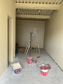 В помещении только что завершен ремонт из качественных материалов. Стены и потолок песочного цвета из панелей и покраски, пол в коридоре и туалете из плитки под дерево, в кабинетах из серого линолеума Таргет. Сделано хорошее теплое белое светодиодное освещение. Ремонт передаем в полностью готовом состоянии.