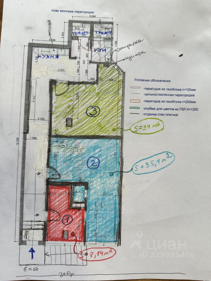 Помещение состоит из трех основных помещений, первое и второе с окнами и возможностью проветривания. третье без окон. Также есть коридор, кухня, туалет и комната уборочного инвентаря с туалетом.