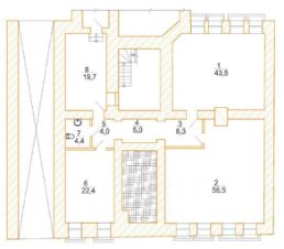 Находится в цокольном этаже 5-этажного клубного жилого дома. Удобная продуманная планировка: три просторных кабинета, собственный санузел. Отдельный вход со двора здания. В офисе выполнена качественная отделка с применением дорогих материалов. В каждом помещении окна.