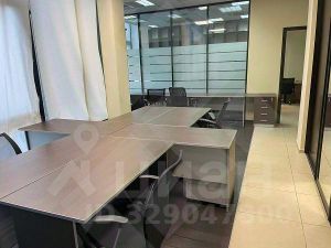 Офис разделен на следующие зоны: входная группа (стойка ресепшена, трехстворчатый шкаф), переговорная, комната отдыха, пространство для сотрудников типо "опенспейс" (без перегородок), рассчитанное на 6 человек, еще одно пространство для сотрудников "опенспейс" (без перегородок), рассчитанное на 6 человек, пространство для сотрудников типо "опенспейс" (без перегородок), рассчитанное на 14 человек (рассадка 6-4-4), два кабинета руководителя, две кладовые/ серверные (можно использовать по желанию), кабинет директора (место директора, 4 гостевых места). Потолок 4м. Планировка смешанная. Выполнен дизайнерский ремонт. Офис сдается с мебелью! В БЦ ведется круглосуточное видеонаблюдение, организован пропускной режим, предусмотрена гостевая парковка по заявке.