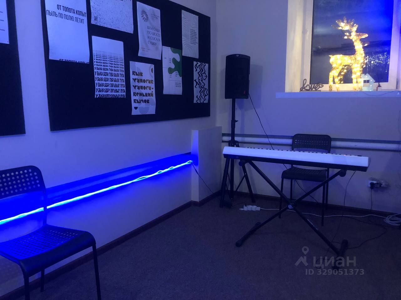 Помещение расположено в музыкальной студии, площадью 165 кв2, есть места общего пользования - зона ресепшн с администратором (кулер с водой, чай/кофе), уборная, зона ожидания и гардероб. В музыкальной студии есть своя студия звукозаписи.