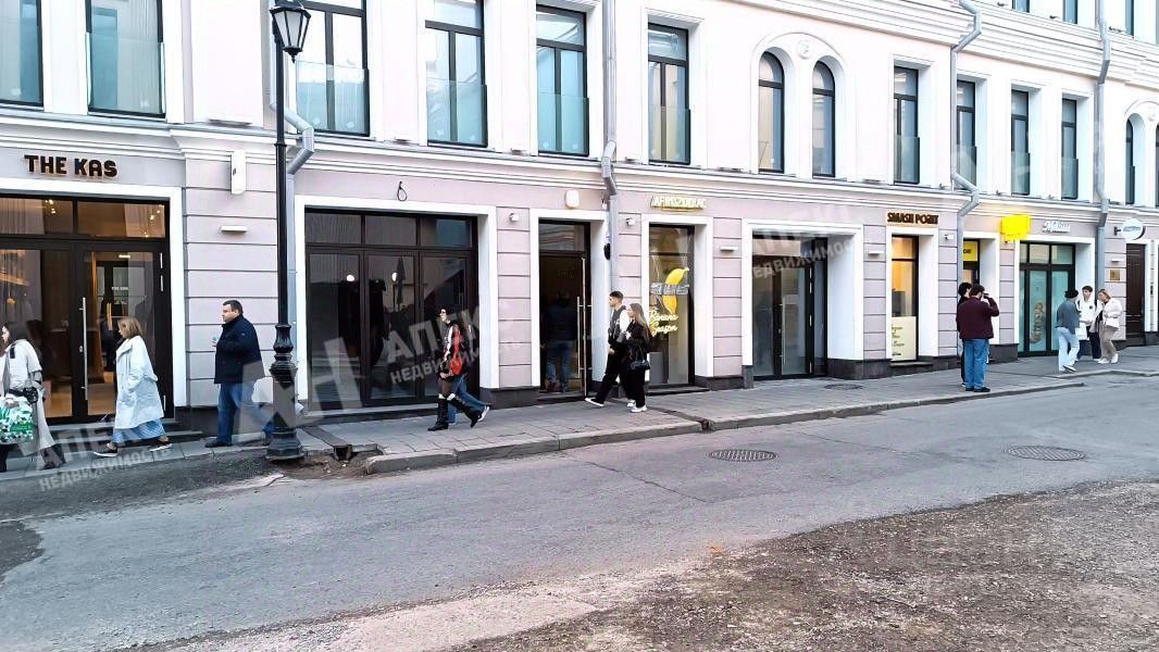 Интенсивный пешеходный трафик, первая линия, престижный район Патриарших прудов в историческом и деловом центре Москвы, в непосредственной близости расположены бизнес-центры и элитные ЖК.