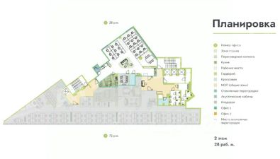 Помещение находится на втором этаже и рассчитано на 28 рабочих мест. Офис имеет продуманную планировку, которая включает переговорную комнату, зону отдыха, просторную кухню, серверную комнату и телефонные боксы для приватных звонков. Вся необходимая мебель уже установлена.
