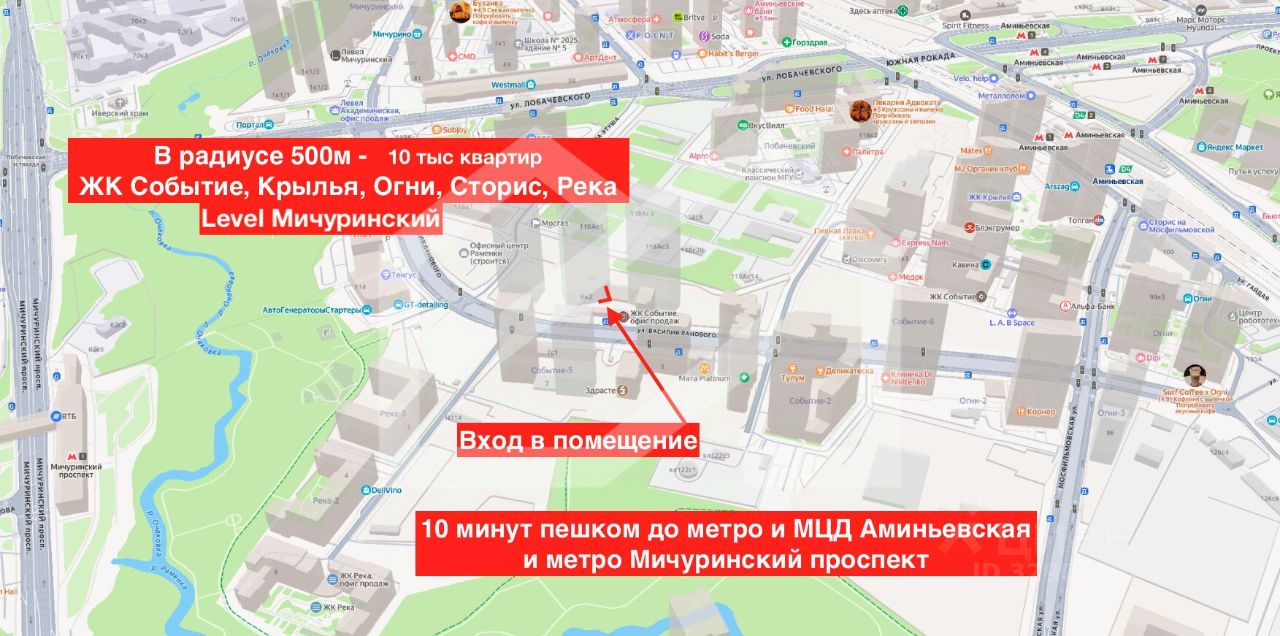 -10 минут пешком от станции метро Мичуринский проспект;