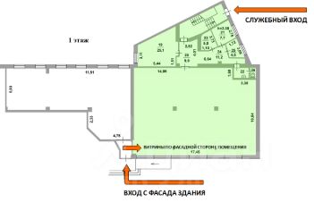 Большой торговый зал правильной формы и открытой планировки, с высокими потолками, что позволяет эффективно использовать пространство под различные форматы бизнеса.