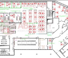 Смешанная планировка: ресепш, open space, кабинеты, переговорные, гардеробная, свои с/у и кухня с зоной приема пищи (кофе-пойнт).
