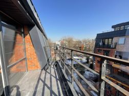 В апартаменте два балкона и два уровня с отдельным выходом на эксплуатируемую крышу.