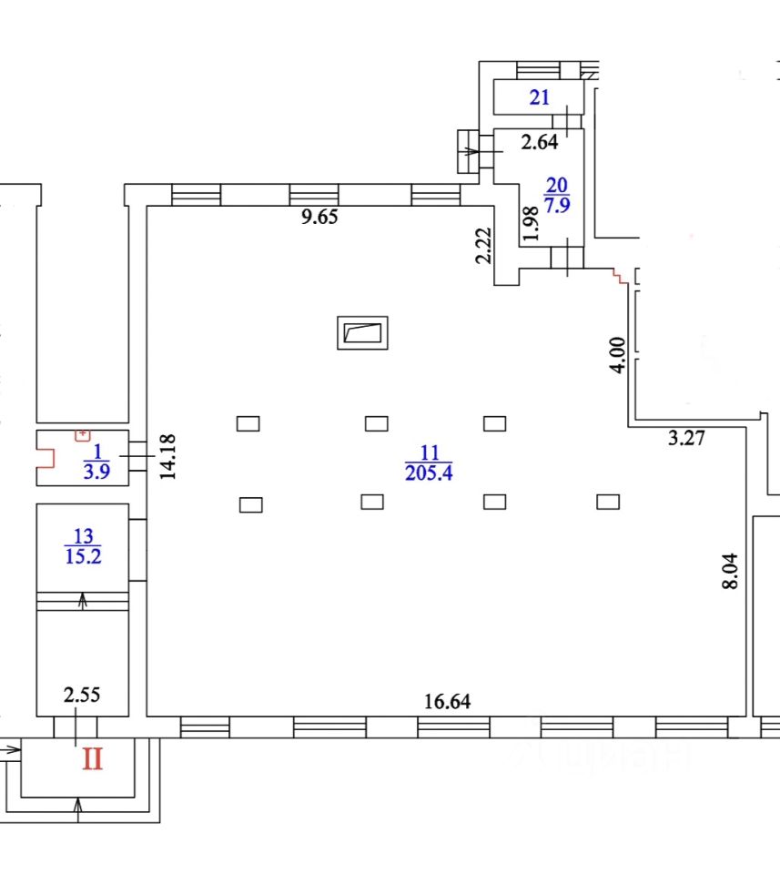 Из несущих конструкций только колонны, высота потолков 4,5 м; выделенная электрическая мощность 100 кВт;