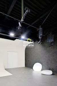 Первый уровень включает просторную студию 98,7 кв.м. для проведения съемок, ресепшн 36,6 кв.м., универсальную комнату 37,5 кв.м., санузел и кладовые.
