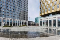 Закрытая территория жилого комплекса, продуманное благоустройство, эксплуатируемые кровли стилобата, образовательный центр с детским садом создают приватное пространство для тихой семейной жизни, а городская площадь с фонтанами, ресторан, супермаркет, коммерческая инфраструктура на первых этажах привносят созвучную с ритмом города динамику.