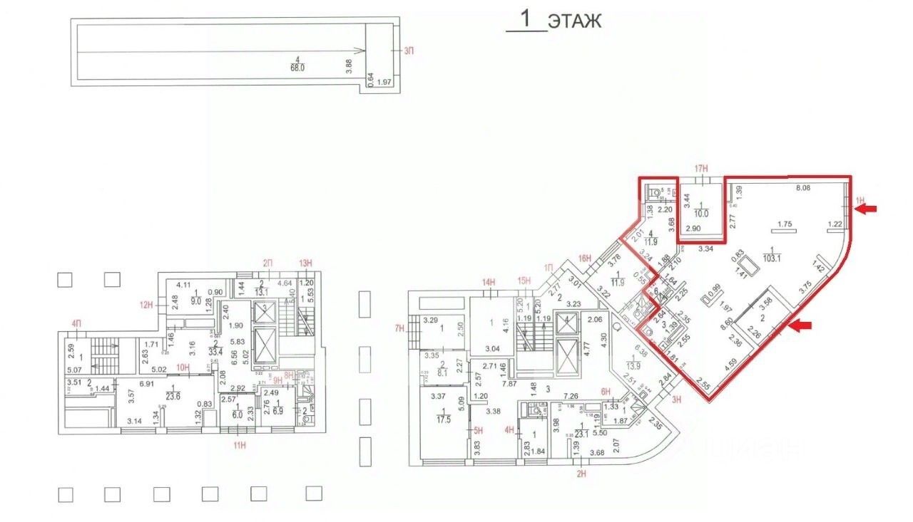 1149483. Предлагаем помещение свободного назначения, площадью 132,8 кв. м., расположенное на первом этаже 14-этажного жилого дома.