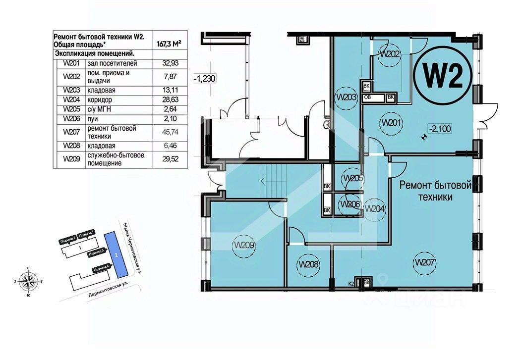 1162038. Предлагаем помещение свободного назначения в ЖК "Время", площадью 167.3 кв. м, расположенное на цокольном этаже 20-этажного жилого дома. Корпус 2, помещение 5Н.