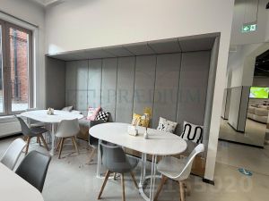В здании выполнен стильный современный ремонт. Общая площадь офиса 1019,6 м2. Дизайнерская отделка, большие витринные окна, высокие потолки.