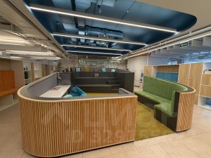 В офисе выполнен стильный современный ремонт. Общая площадь офиса 2266,1 м2. Дизайнерская отделка, большие витринные окна, высокие потолки.
