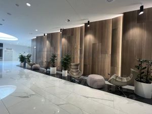 10 000 м2 сервисов, в том числе фуд-корты, столовая корпоративного питания, кофейни, ресторан с верандой при 4* отеле, химчистки, автомойка, автомоб. зарядка, продуктовые магазины, конференц-зало на 350 мест, другие сервисы и услуги.