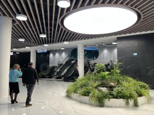 10 000 м2 сервисов, в том числе фуд-корты, столовая корпоративного питания, кофейни, ресторан с верандой при 4* отеле, химчистки, автомойка, автомоб. зарядка, продуктовые магазины, конференц-зало на 350 мест, другие сервисы и услуги.
