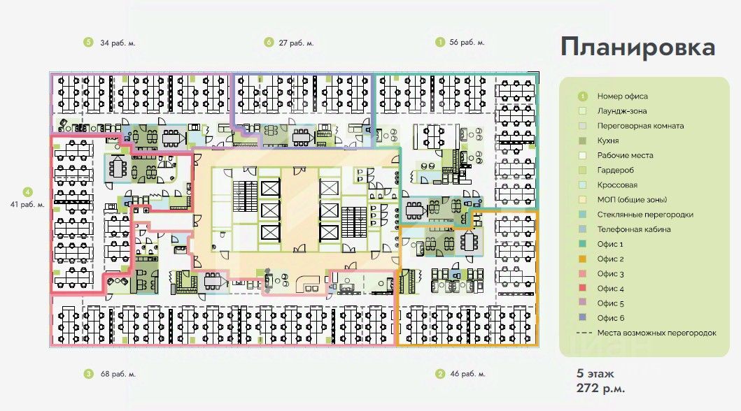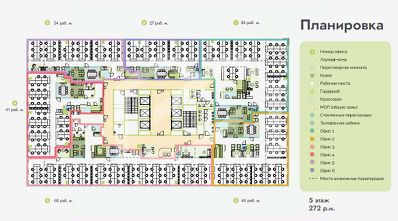 В арендную ставку включены все необходимые платежи: эксплуатационные и коммунальные расходы, услуги охраны и клининга, мелкий ремонт, а также вода, кофе, угощения, оргтехника.