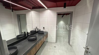 В помещении выполнена офисная отделка, смешанная планировка ( open-space, 9 кабинетов для руководителей, кабинет для топ-руководителя, с выходом на большую террасу, 3 комнаты приема пищи, в т.ч. с видом на футбольное поле, подсобные и тех. помещения, серверная).