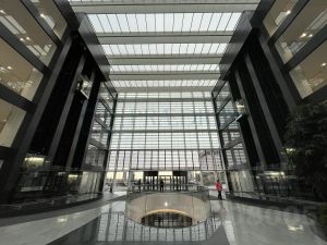 10 000 м2 сервисов, в том числе фуд-корты, столовая корпоративного питания, кофейни, ресторан с верандой при 4* отеле, химчистки, автомойка, автомоб. зарядка, продуктовые магазины, конференц-зало на 350 мест, другие сервисы и услуги.