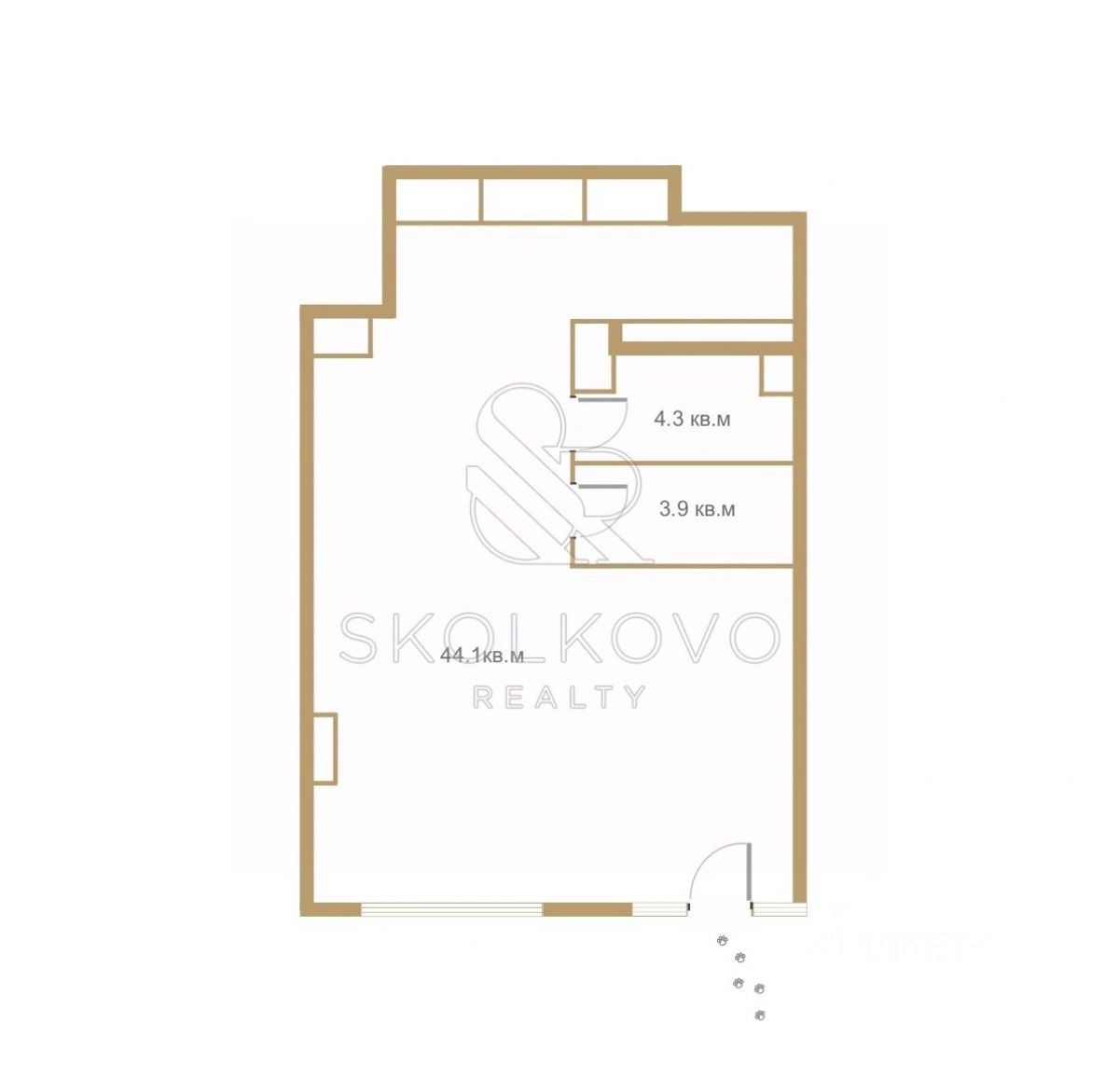 Высокие потолки с возможностью организации антресоли, панорамные окна, мокрая тачка.