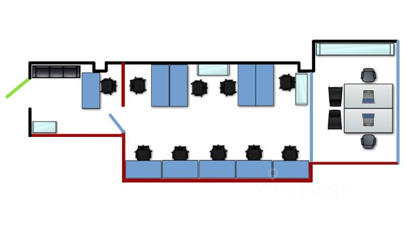 Освобождается с 15.05.2026. Прямая аренда, комиссии нет. Офис разделен стеклянной перегородкой на основной зал и кабинет руководителя. Предлагаемая планировка разработана с учетом возможности максимального заполнения офиса (до 12 человек на 42 кв.м.) Офис хорошо освещен светодиодными светильниками, много розеток. Окна открываются. Также установлена внутренняя сплит-система помимо центральной вентиляции. Расположен в БЦ класса В+ Марьина роща. Современные инженерные системы, подземный паркинг, гостевая стоянка. В БЦ действует кафе. Также в здании расположен центр городских услуг "Мои документы". Коммунальные расходы согласно счетам управляющей организации.