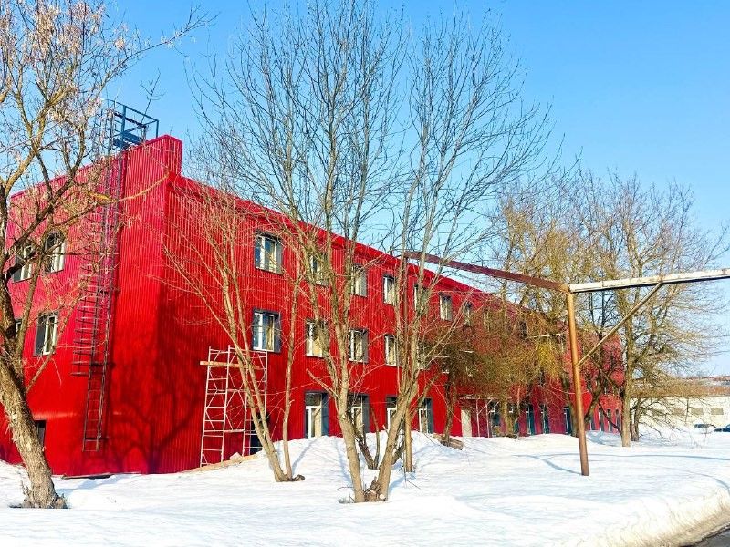 - Административно-бытовое трехэтажное помещение (Состоит из офисов, бытовых комнат и общежития с комнатами для проживания, душевых/санузлов + столовая с кухней). С возможностью регистрации иностранных граждан, работающих по патенту. Каждый этаж 60х10м.