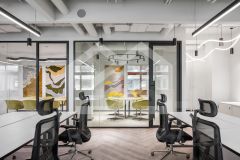 - Планировка смешанная: система гибких перегородок и модульной мягкой мебели