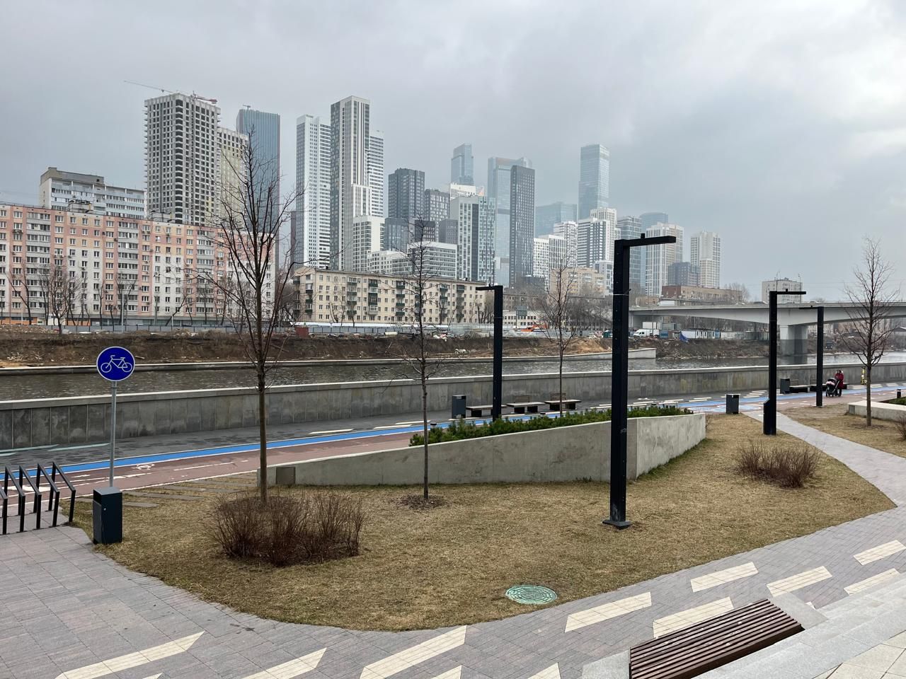 Первая линия набережной Москвы-реки. Помещение расположено непосредственно на основном прогулочном маршруте. Вдоль фасада — пешеходная зона и велодорожка, набережная благоустроена и включает зоны отдыха.