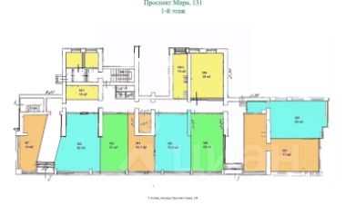 Сдаётся левое крыло коммерческого блока — 247 м² на первом этаже, проспект Мира, 131. Четыре помещения, угловое расположение, протяжённое витринное остекление, потолки 4 метра. Возможна перепланировка под нужды арендатора.