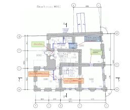 Описание помещения: В здании два этажа и подвал. Площадь первого этажа составляет 151,6 м2, второго - 170,1 м2. Предусмотрены три отдельных входа с улицы. Коммуникации включают центральное водоснабжение, канализацию и отопление, также подведены электрическая мощность 150 кВт и интернет.