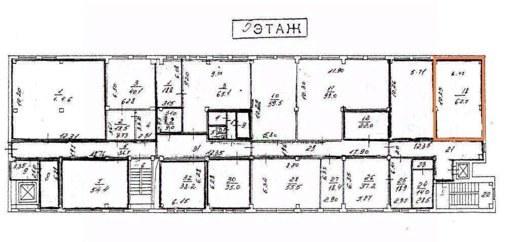 Помещение свободного назначения, расположенное, на 5-ом этаже., административного здания. Одной небольшой комнатой. Напольное покрытие производственный линолеум, стены окрашены. В здании есть пассажирский лифт, он находится рядом с помещением, а также, и грузовой лифт. Электрическая мощность - 20 кВт. Высокие потолки 3,4 м. Санузел на этаже. Доступ 24/7. Подойдет под размещение шоу-рума, швейной мастерской, интернет-магазина, и др. виды деятельности. Огороженная охраняемая территория. Развитая инфраструктура: подъезд большегрузного транспорта, телекоммуникации, кафе, столовая, автосервис. Удобная транспортная развязка, возможен заезд на территорию с ТТК.