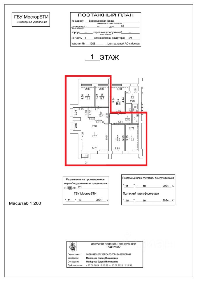 Предлагается нежилое помещение площадью 130 м² на 1 этаже по адресу: Москва, ул. Воронцовская, д. 26.