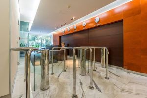 Бизнес-центр обслуживается четырьмя лифтами фирмы "ThyssenKrupp Elevator"