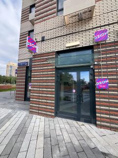 Помещение ближайшее к новому скверу, пешеходные дорожки из сквера выходят прямо к помещению.