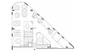 Состоит из зоны open-space, нескольких кабинетов, кухни, санузлов.