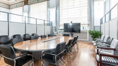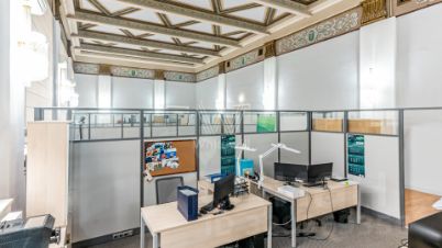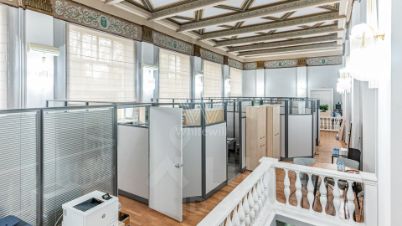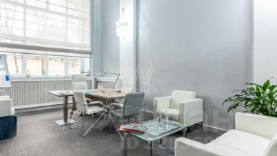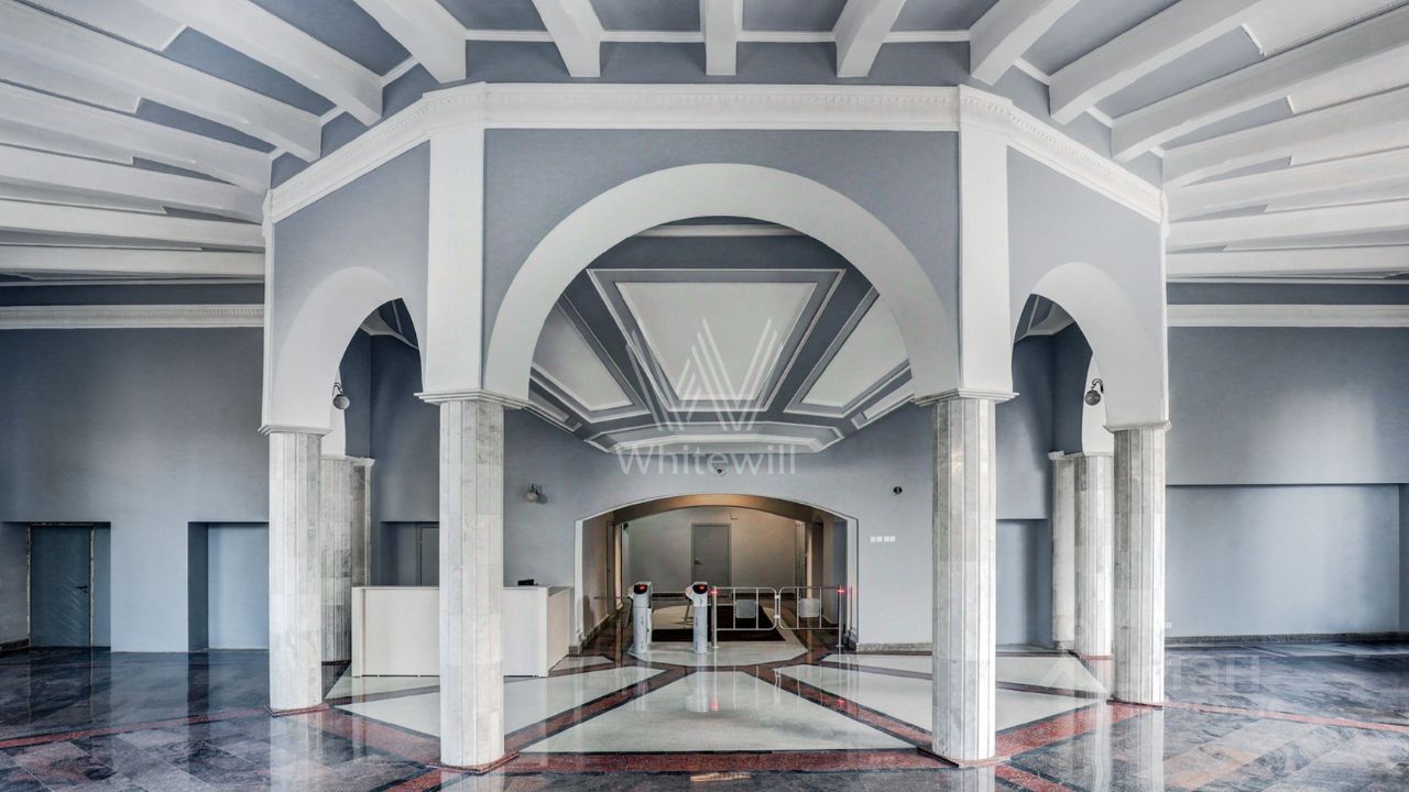 Помещение в шестиэтажном особняке на Баррикадной улице в Пресненском районе. Здание после реконструкции по уровню комфорта и безопасности соответствует бизнес-центру В класса. Вход осуществляется через общее презентабельное лобби с колоннами и лепниной. Внутри открытая планировка и высота потолков 8 метров. Пространство разделено на отдельные кабинеты легковозводимыми перегородками, которые можно полностью демонтировать и организовать помещение под себя. Ремонт выполнен в светлых тонах, по периметру комната украшена фризами с классическим орнаментом и кессонированным потолком с геометрическим орнаментом. Большое количество высоких окон наполняет помещение дневным светом. Во дворе за шлагбаумом расположена наземная охраняемая парковка на 30 автомобилей. Объект подходит для размещения офиса, галереи или шоурума.