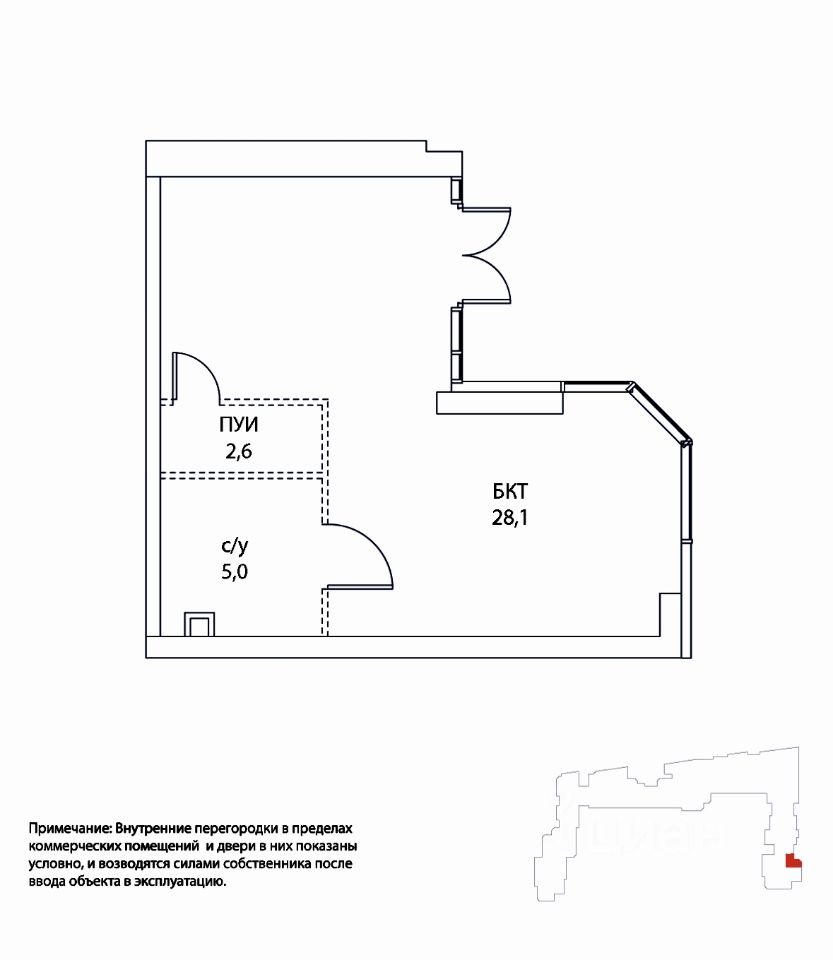 Коммуникации: отдельная вытяжка, кондиционирование, одна мокрая точка, от которой можно сделать разводку, канализация центральная, система пожаротушения и дымоудаления.