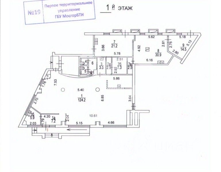 1127638. Предлагаем помещение свободного назначения, площадью 239 кв. м, расположенное на первом этаже 5-этажного административного здания.