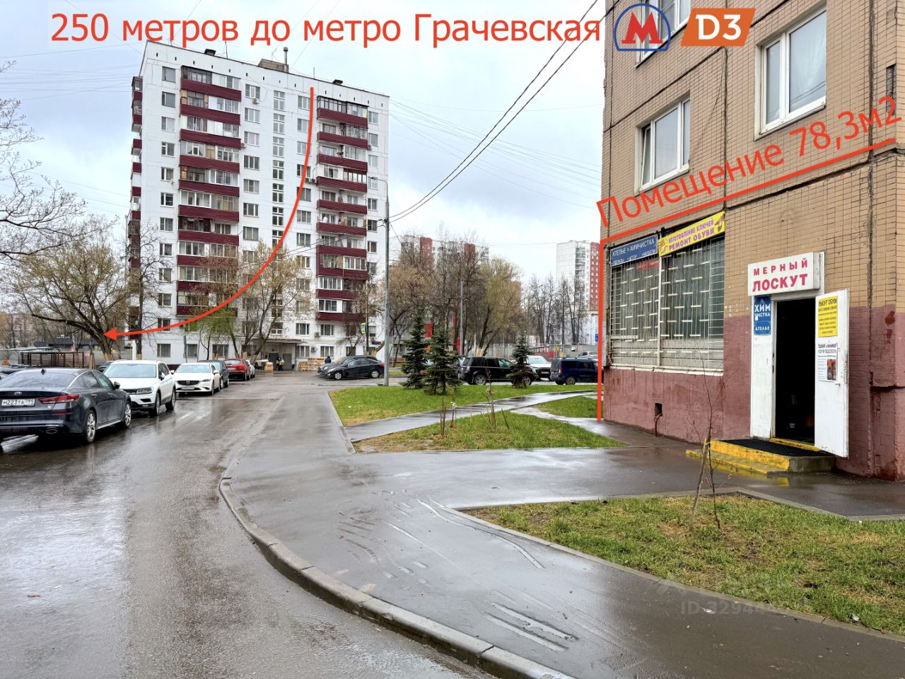 Помещение свободного назначения 78.3 м2, первый этаж 14-этажного жилого дома, первая линия домов, 250 метров до метро (диаметры 3) Грачёвская