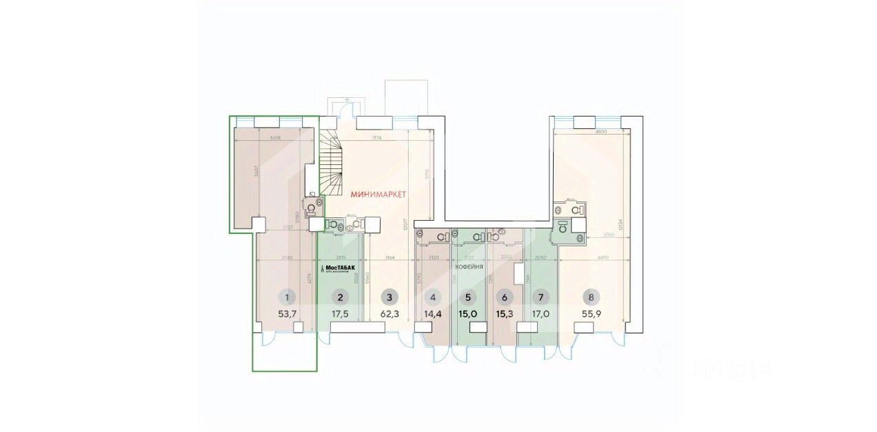 1011841. Предлагаем помещение свободного назначения, площадью 53,7 кв. м, расположенное на первом этаже 7-этажного жилого дома. Блок 1.